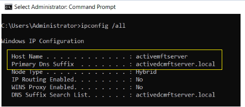 - If you’re not sure what is your domain name and host name. then go to your server, open cmd and run this command ipconfig /all