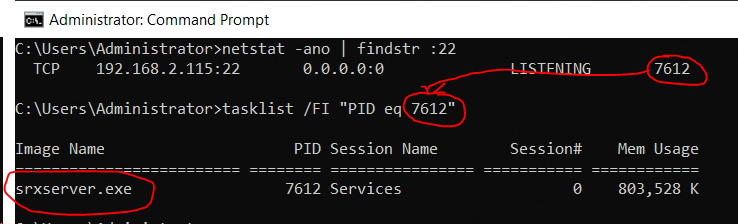 Note: In this example, only srxserver.exe is using port 22. However, in some cases, Titan FTP may not function properly on port 22 if another application is already using it. Understanding this can help prevent conflicts and reduce the time spent troubleshooting the issue.