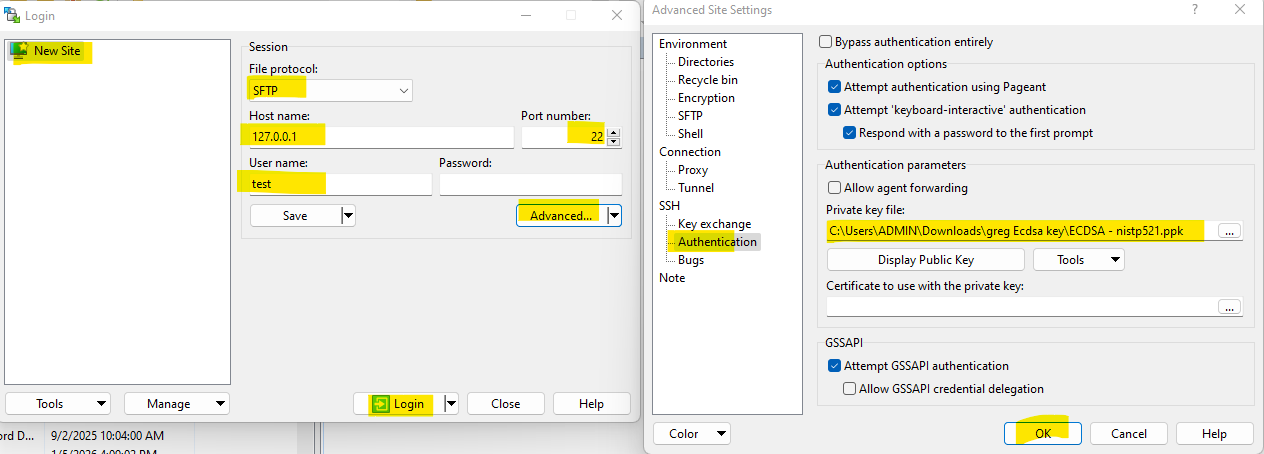 How To: Configure ECDSA (nistp521) key-based authentication for Titan SFTP using WinSCP.