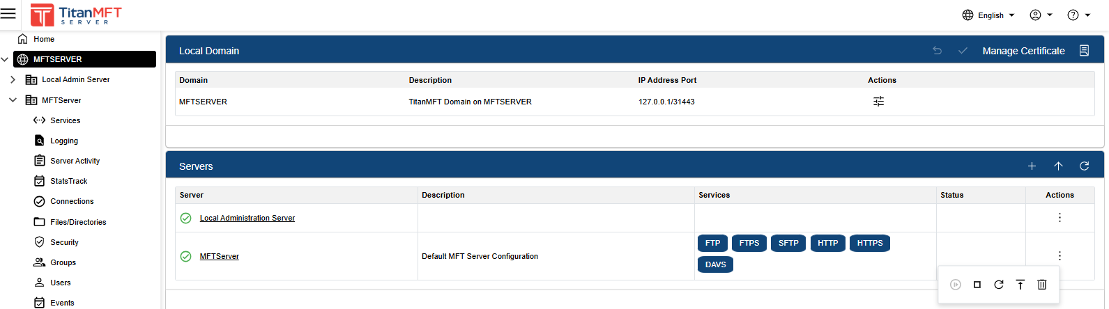 - Restart the service in Domain Page. If didn’t take effect try to Stop and Start the service.
