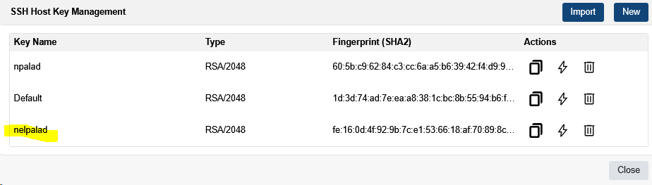 IV. Make sure that the public key has been added in SSH Host Key Management. See sample below: