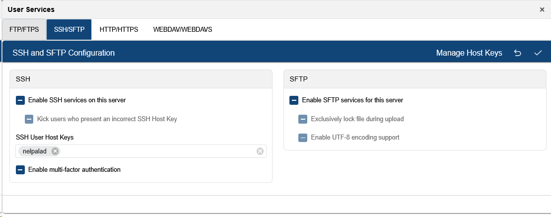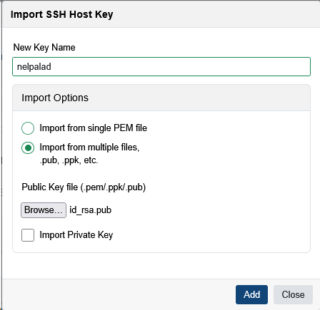 Go to Users -> (Select the user) -> User Services -> SSH/SFTP -> Manage Host Keys -> Import (See below) – Then Add