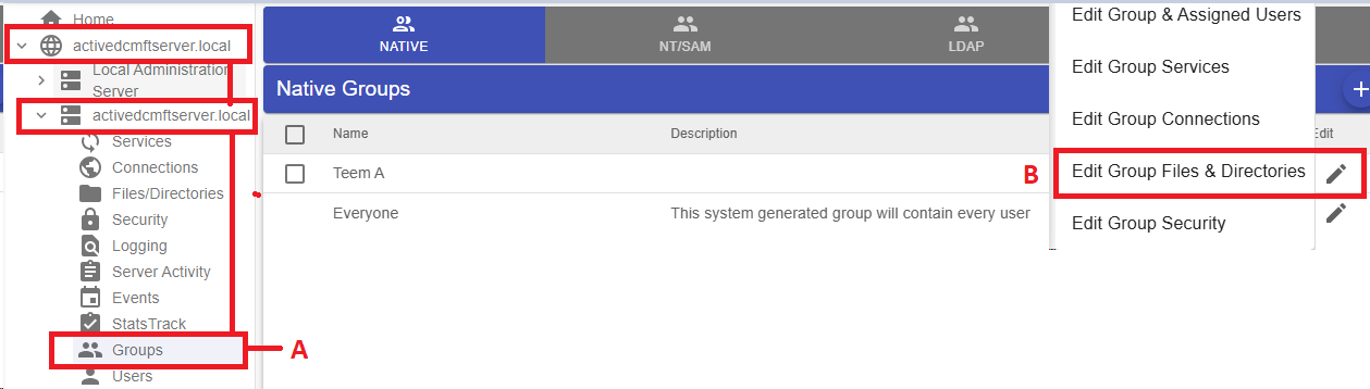 - Select and click edit group you want to limit disk usage. And select Edit Group Files & Directories