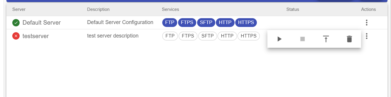 - To start a server, click on the Actions menu on the right and select Start