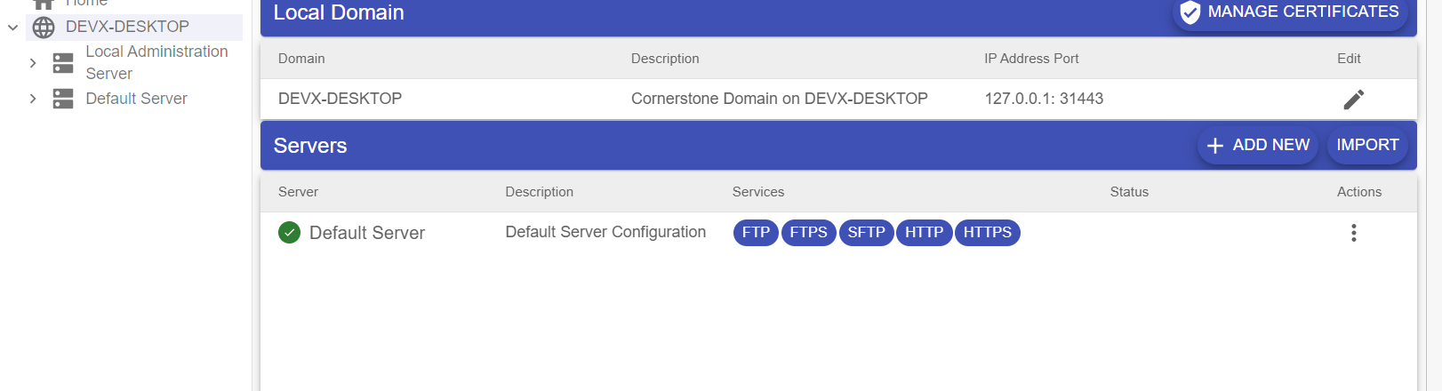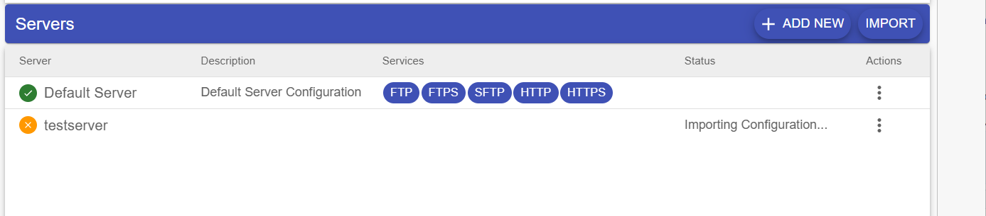 - On the right hand side of the screen, click on the "Import" button to initiate the Server Import Wizard