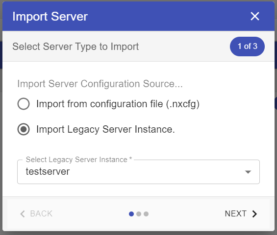 - Choose "Import Legacy Server Instance" and then select the legacy server to be imported