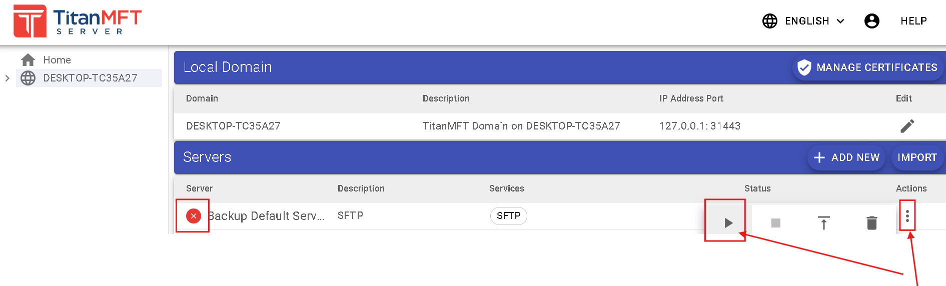 *****Note: Make sure to deactivate the license from your old server and enable or enter it into your new server. Also to Stop the Titan SFTP service from your old server.