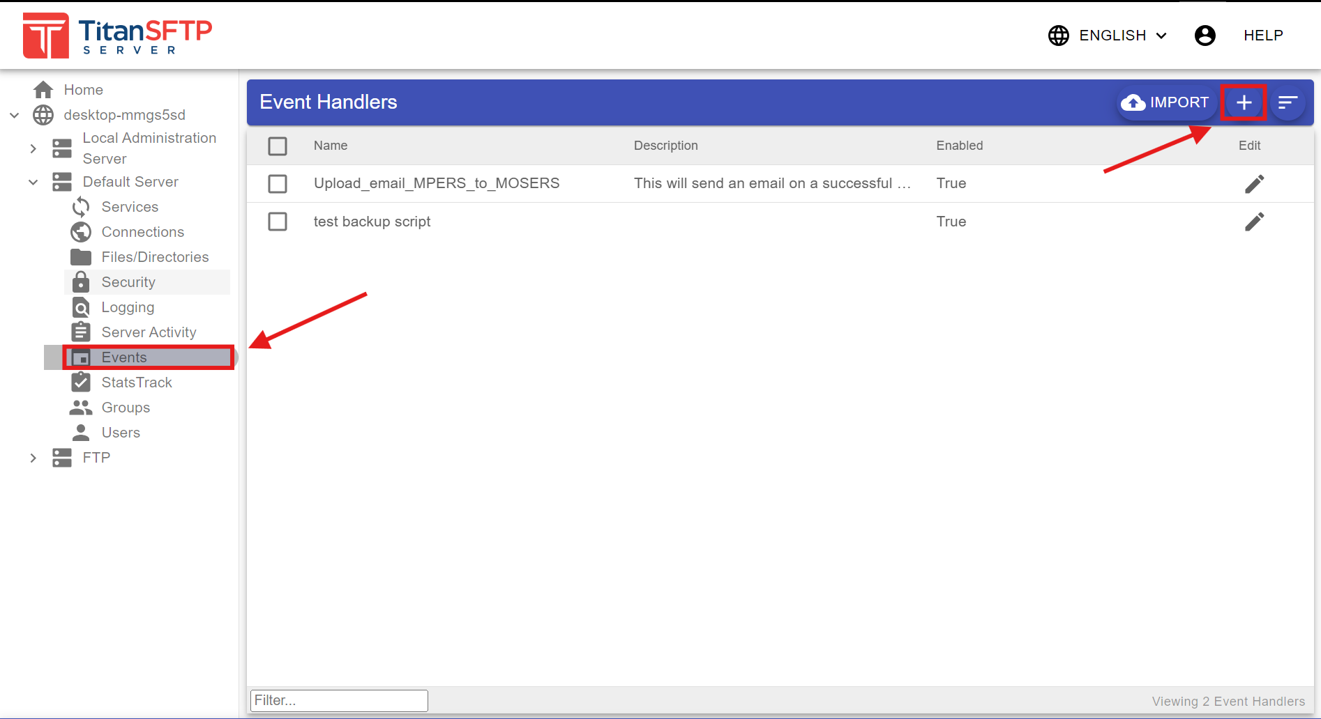 - In your Admin Console, go to Domain > Server > Events > click + button.