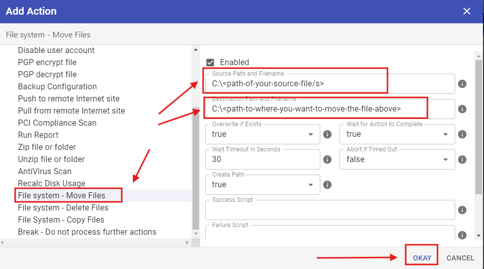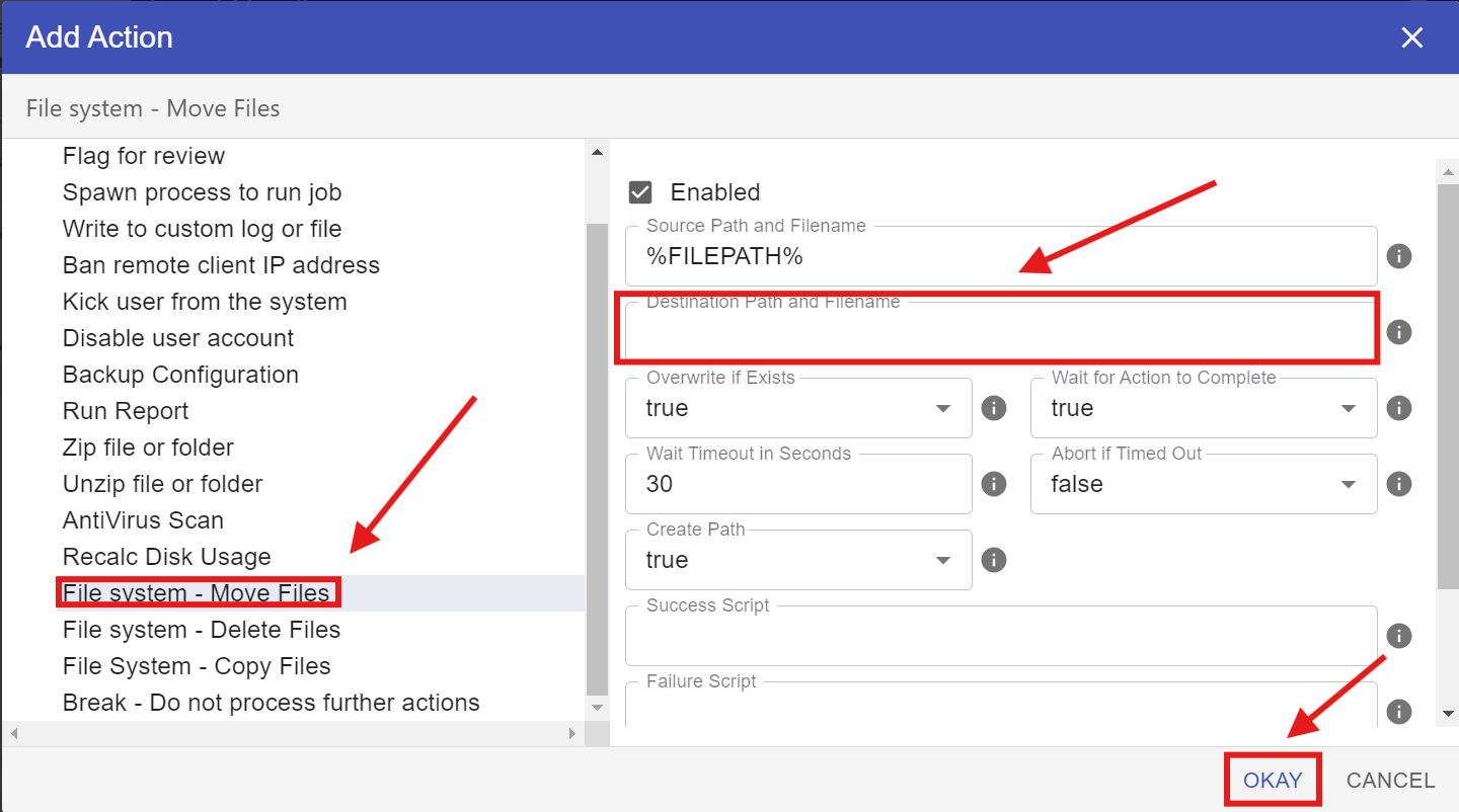 - Choose File System – Move Files > Specify the destination where you wanted to move the files > click Okay