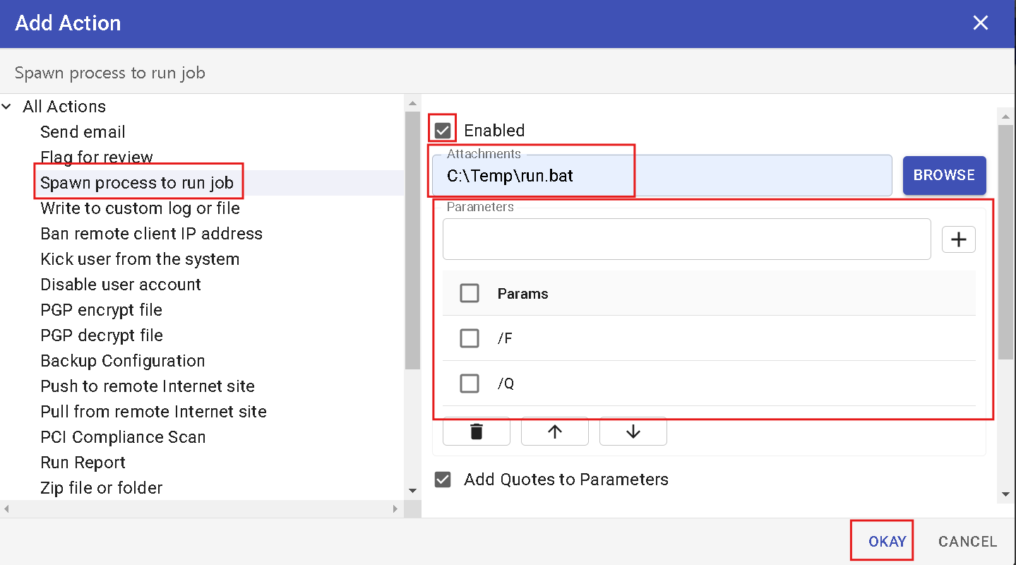 - Choose Spawn process to run job.