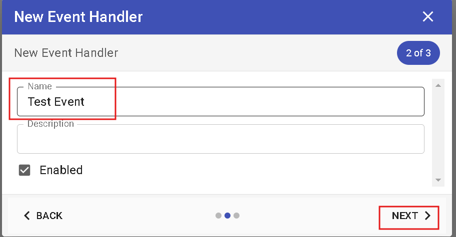- Enter a name for your event, then click Next.