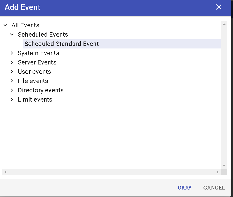 - Choose Scheduled Events > Scheduled Standard Event , then click Okay.